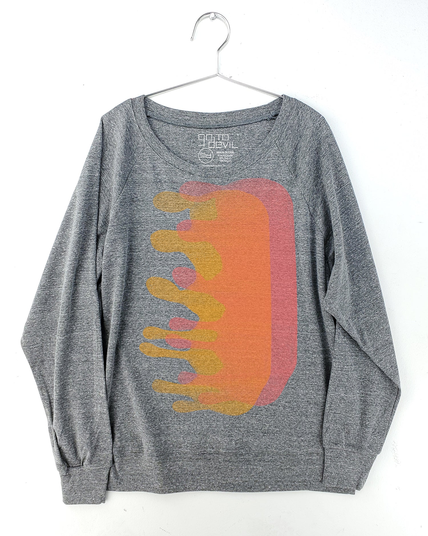 BEST SELLER! Our Tri Blend Pullover is a slouchy top in a soft tri-blend fabric. Perfect for layering and wearable year round. Made in the USA and hand printed to order at Go To Devil HQ.