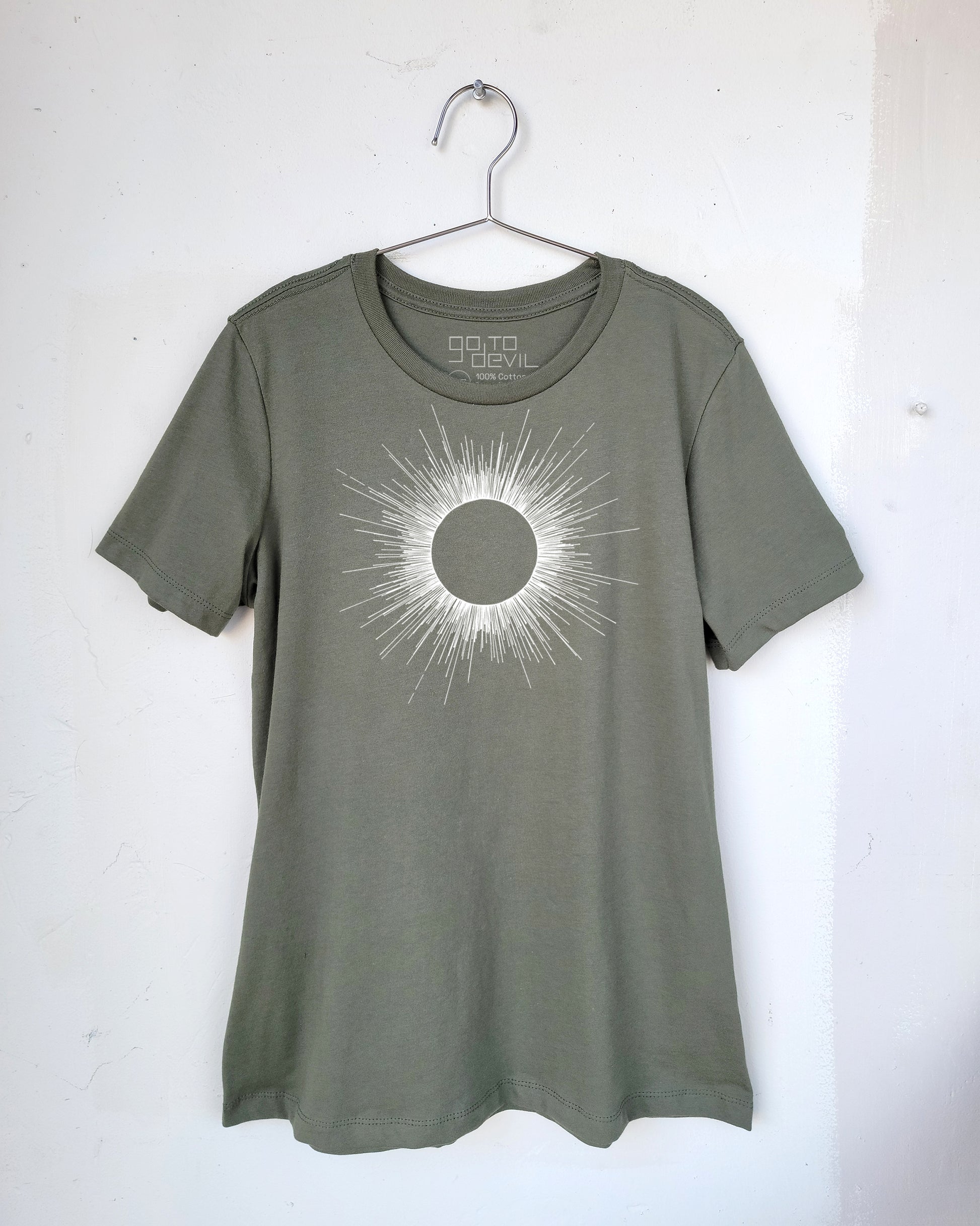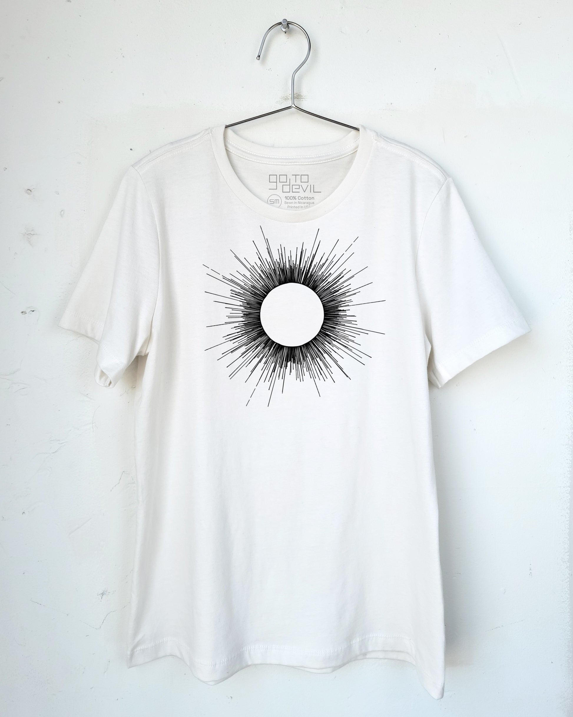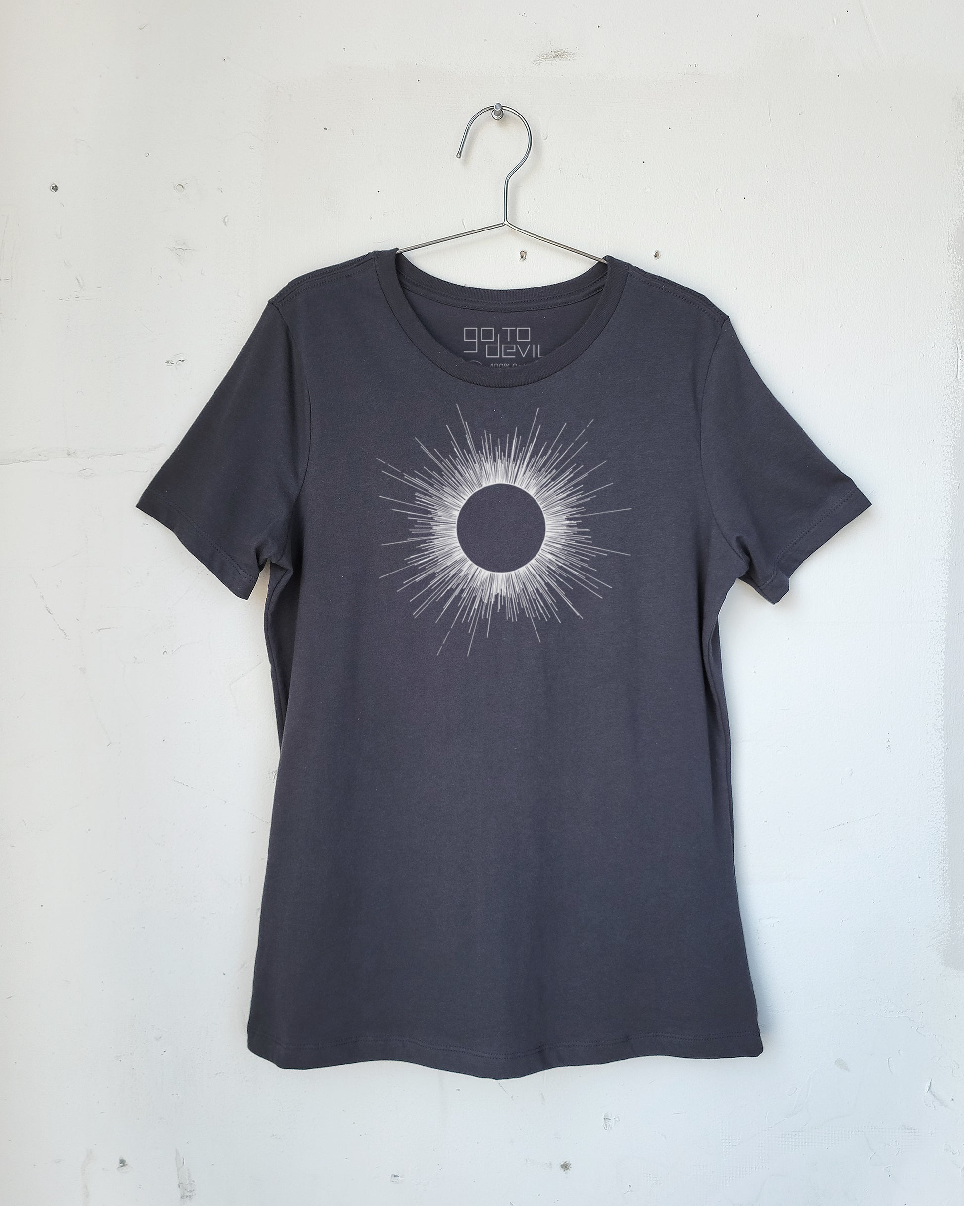 Relaxed fit tee in a super soft lightweight cotton fabric. Hand printed to order at Go To Devil HQ.