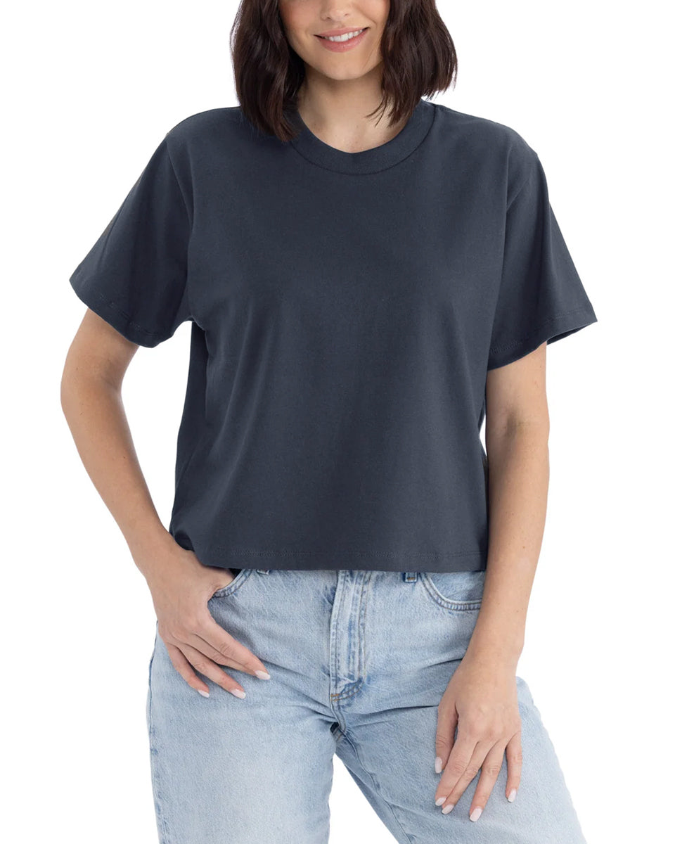 A versatile, high waist heavyweight cotton tee. Super soft. Slightly cropped. Relaxed fit. 100% Cotton. 6.8 oz/sq yard. 16 singles.