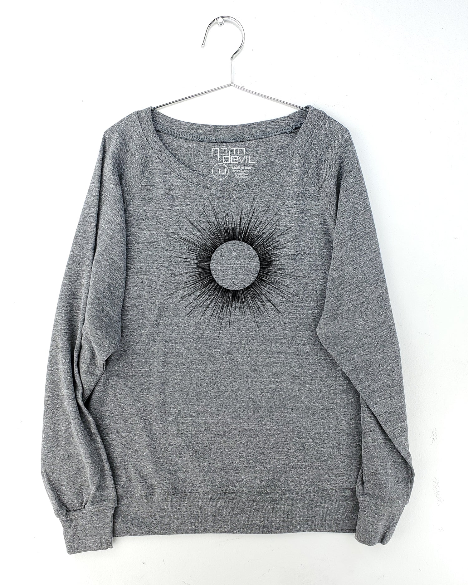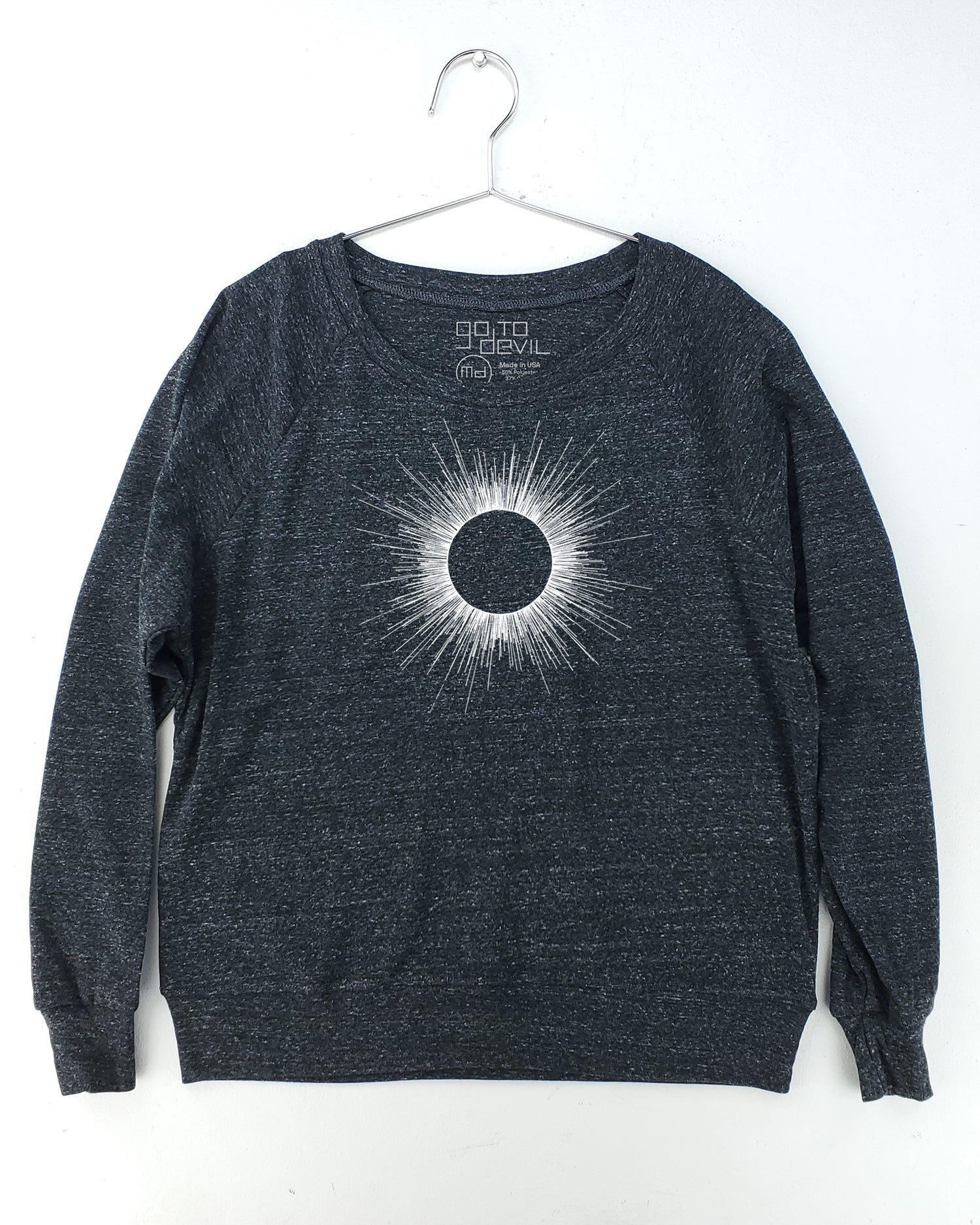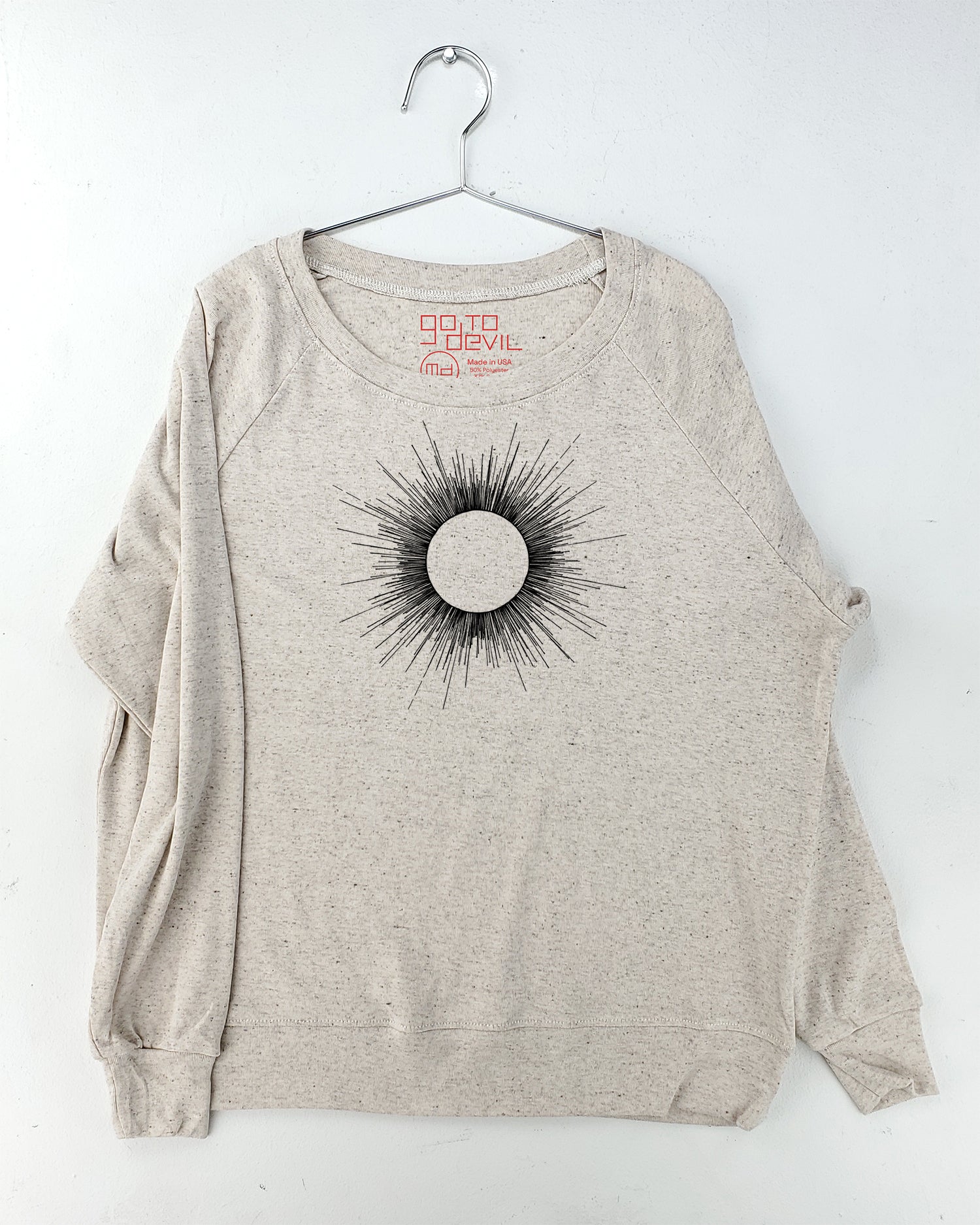 BEST SELLER! Our Tri Blend Pullover is a slouchy top in a soft tri-blend fabric. Perfect for layering and wearable year round. Made in the USA and hand printed to order at Go To Devil HQ.