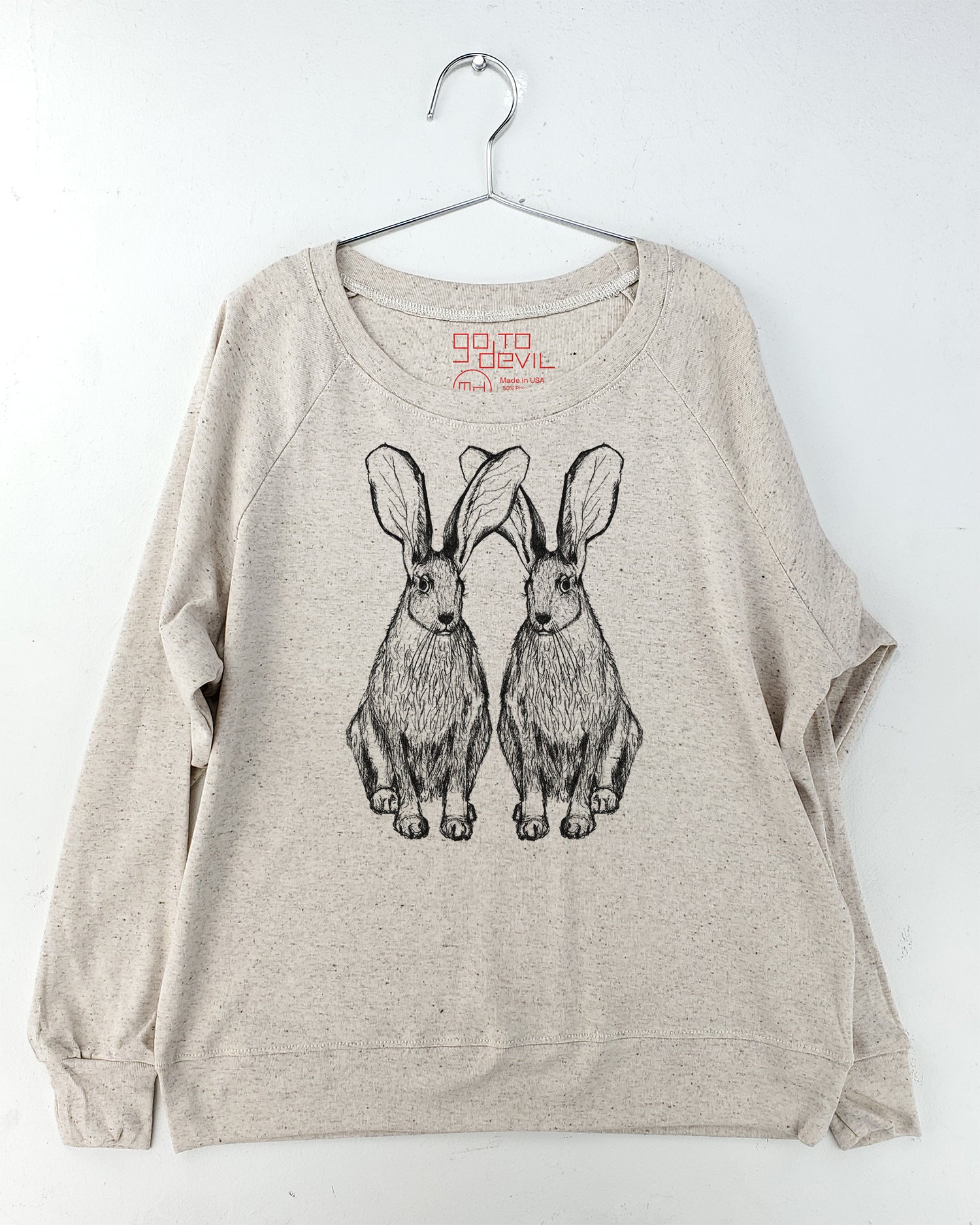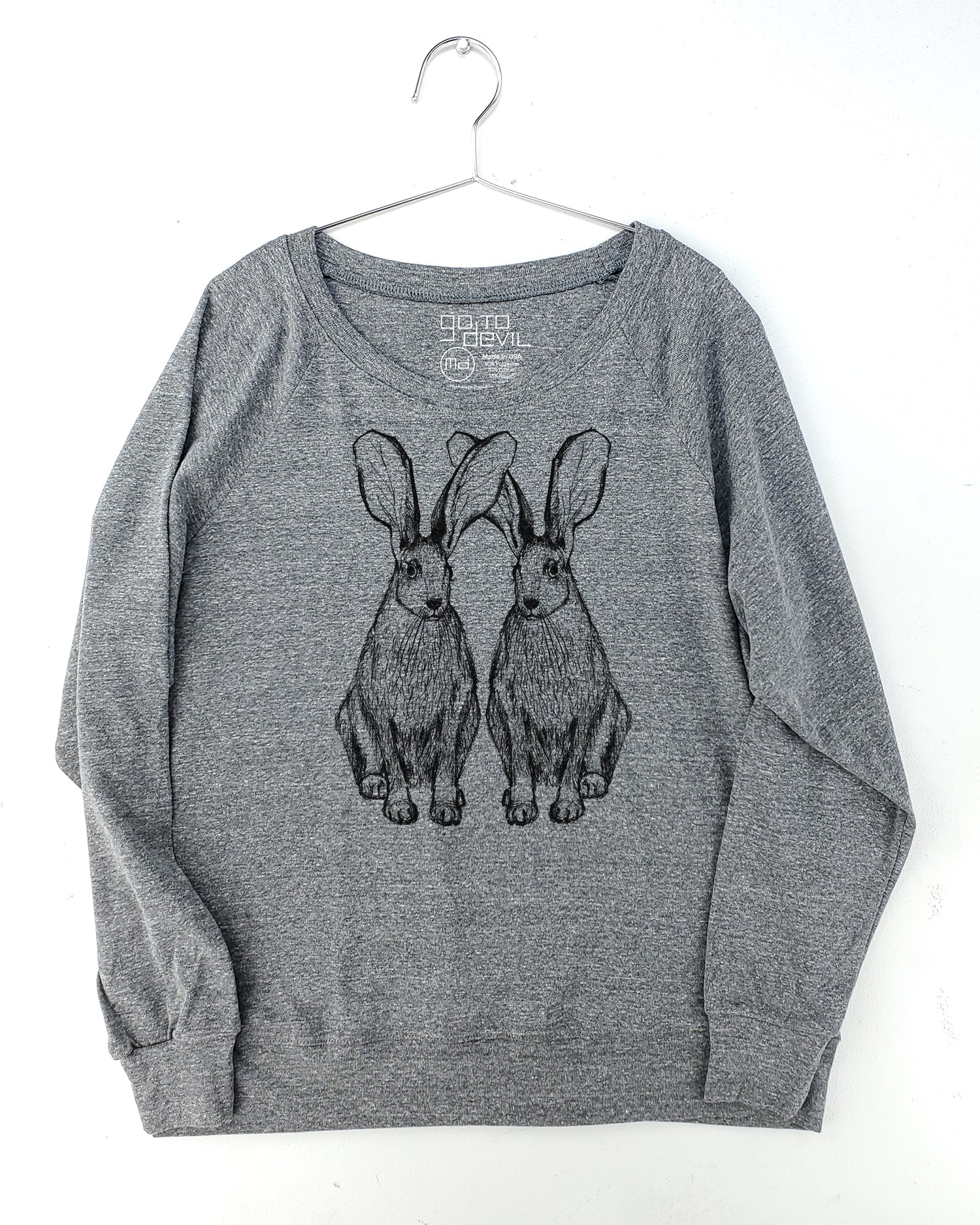 BEST SELLER! Our Tri Blend Pullover is a slouchy top in a soft tri-blend fabric. Perfect for layering and wearable year round. Made in the USA and hand printed to order at Go To Devil HQ.