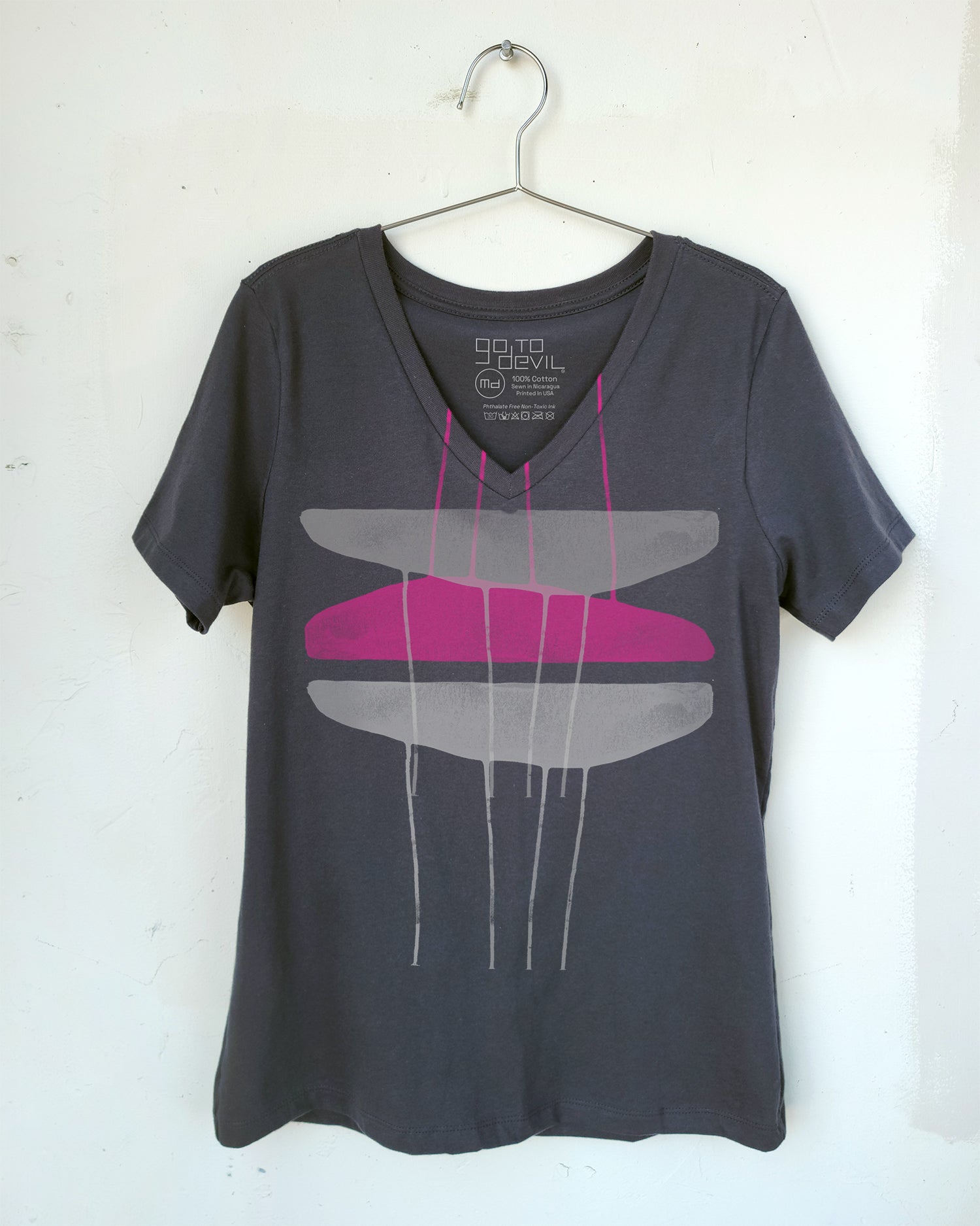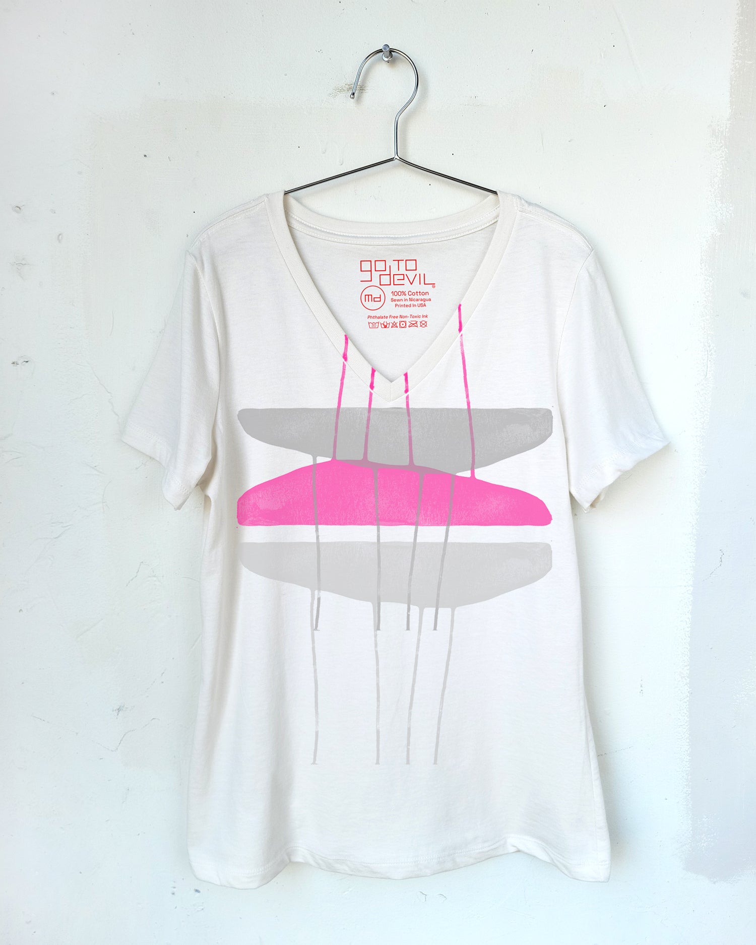Relaxed fit Vee in a super soft lightweight cotton fabric. Hand printed to order at Go To Devil HQ.