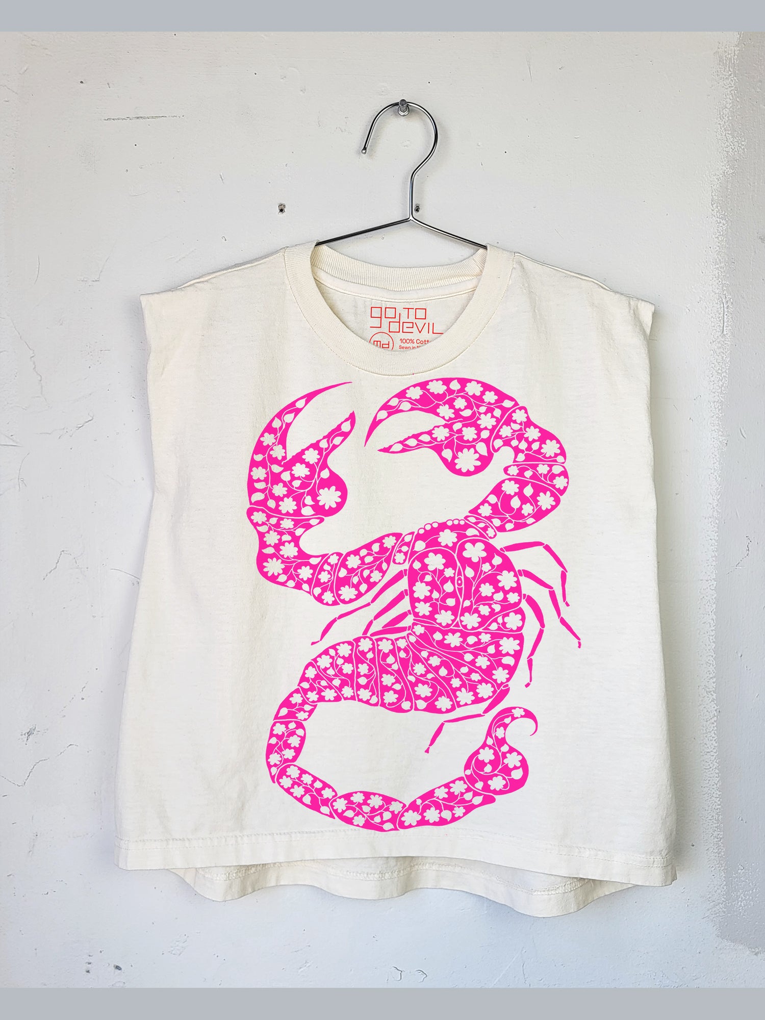 BEST SELLER! Garment dyed heavyweight muscle tee with structured shoulders and a boxy fit. Slightly cropped. Hand printed to order at Go To Devil HQ.