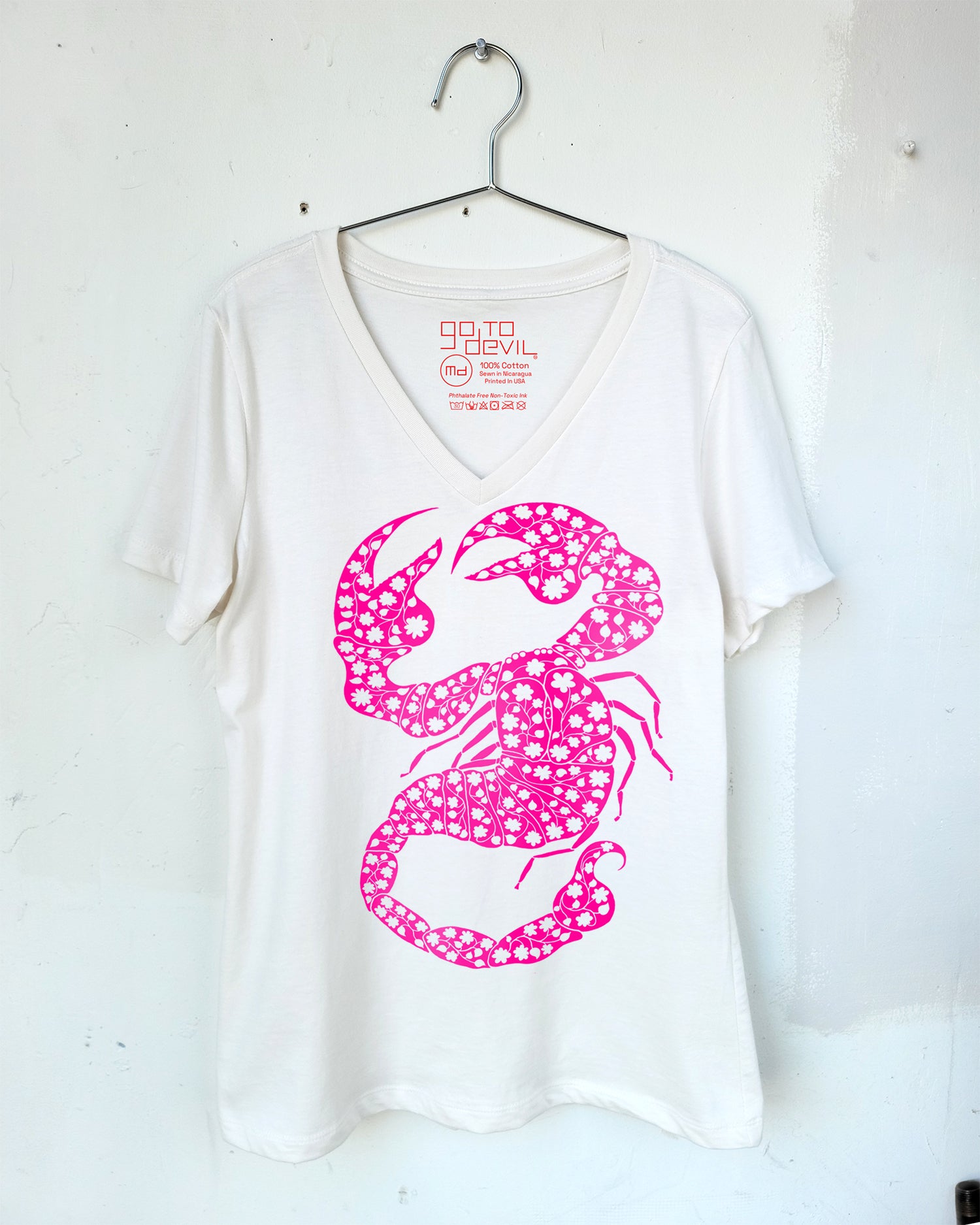 Relaxed fit Vee in a super soft lightweight cotton fabric. Hand printed to order at Go To Devil HQ.