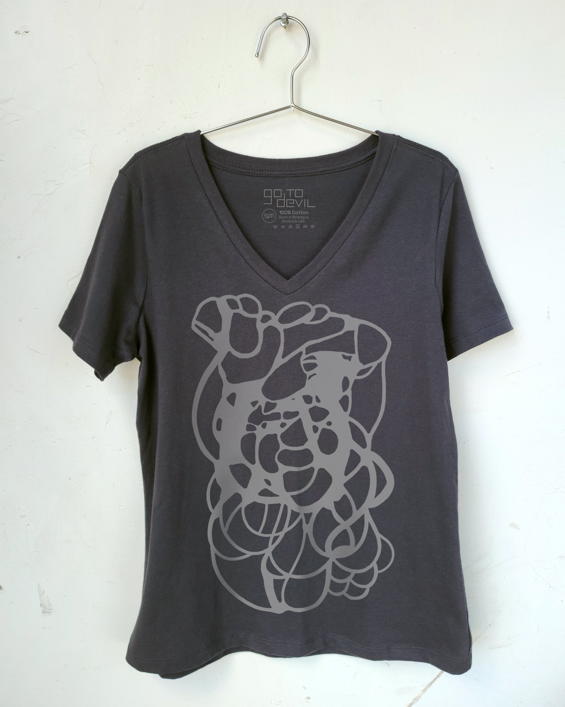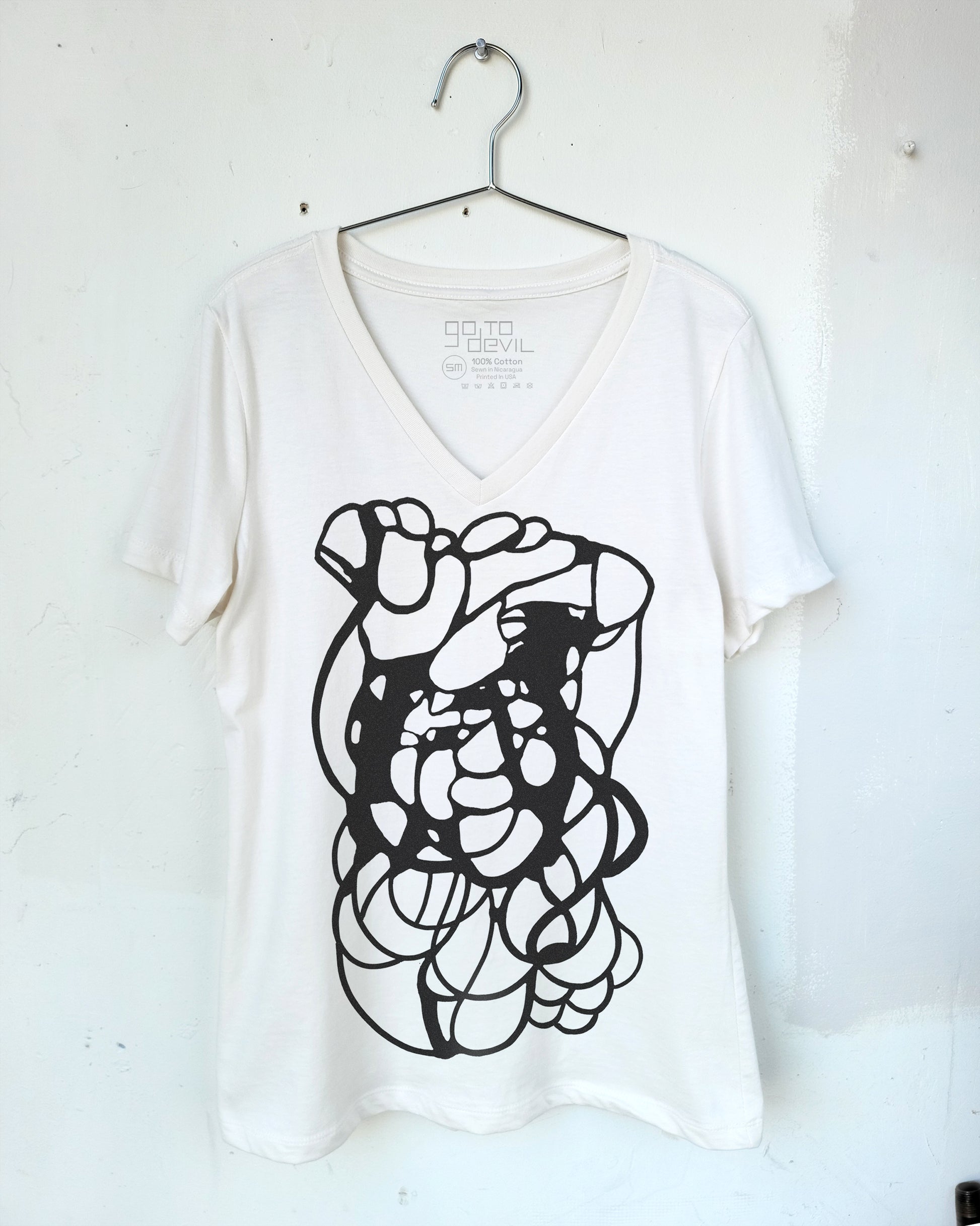 Relaxed fit Vee in a super soft lightweight cotton fabric. Hand printed to order at Go To Devil HQ.