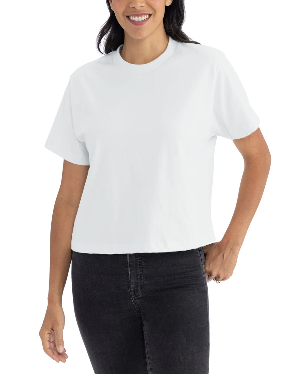 A versatile, high waist heavyweight cotton tee. Super soft. Slightly cropped. Relaxed fit. 100% Cotton. 6.8 oz/sq yard. 16 singles.