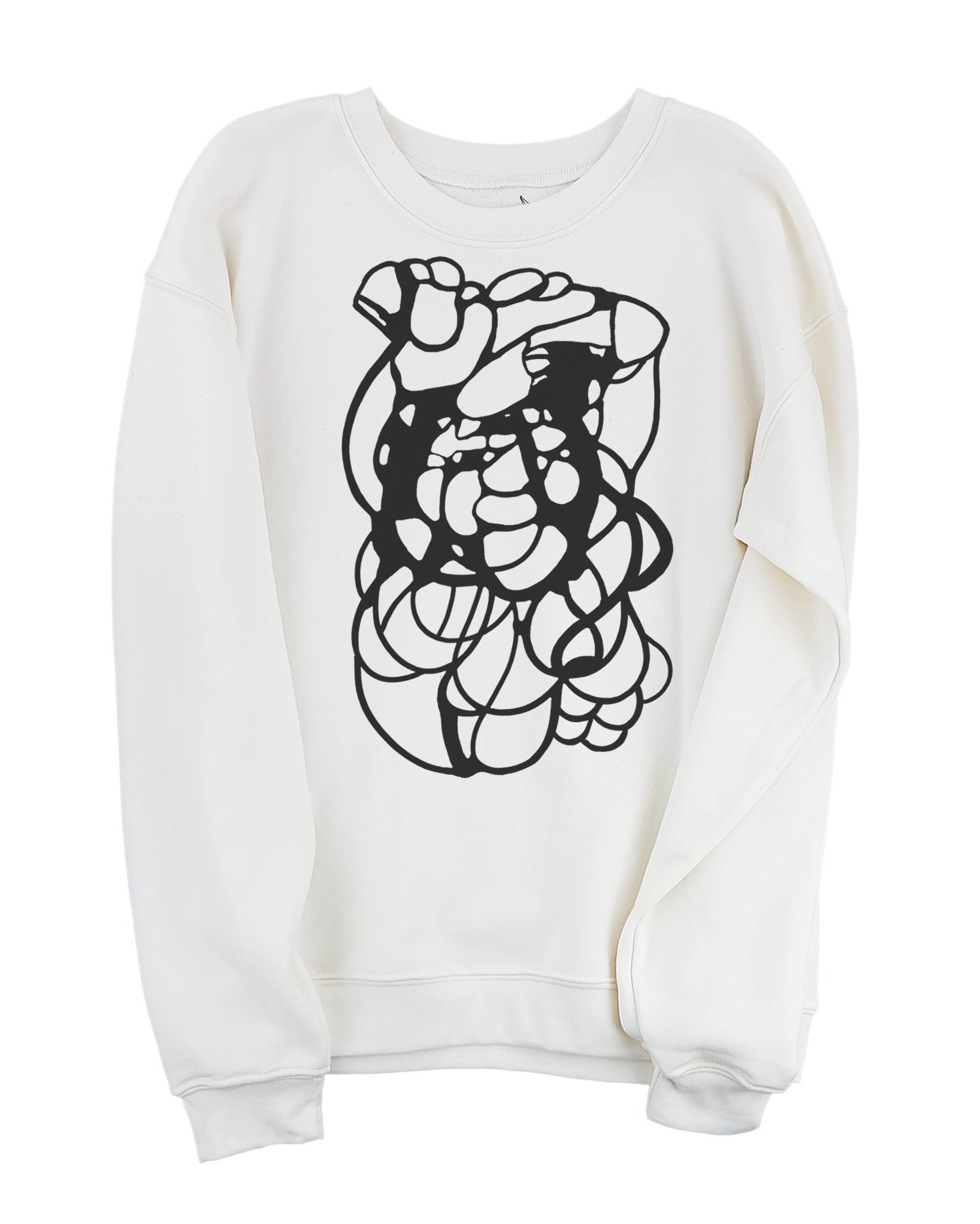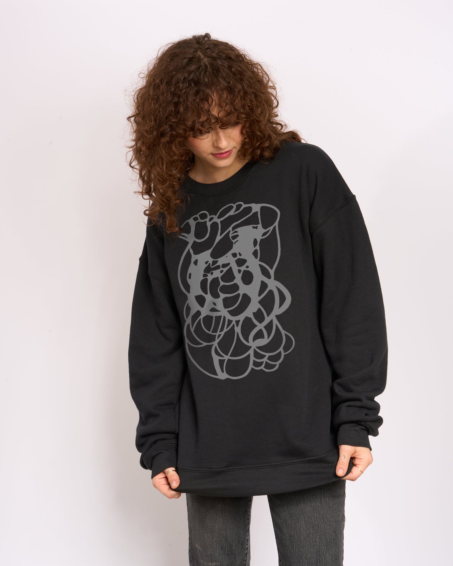 A super comfy oversized fleece sweatshirt with drop shoulders. Made in USA and hand printed to order at Go To Devil HQ.