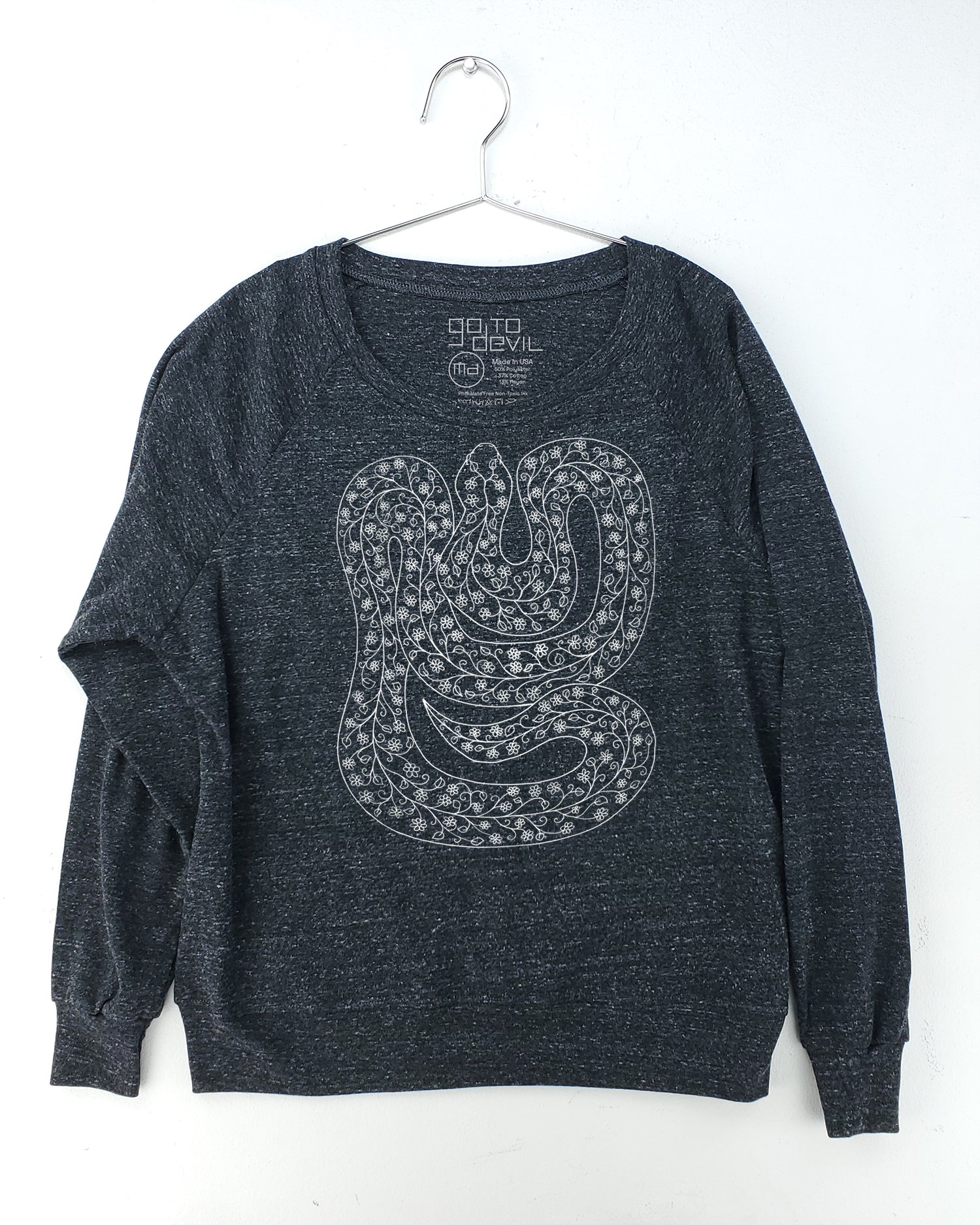 BEST SELLER! Our Tri Blend Pullover is a slouchy top in a soft tri-blend fabric. Perfect for layering and wearable year round. Made in the USA and hand printed to order at Go To Devil HQ.