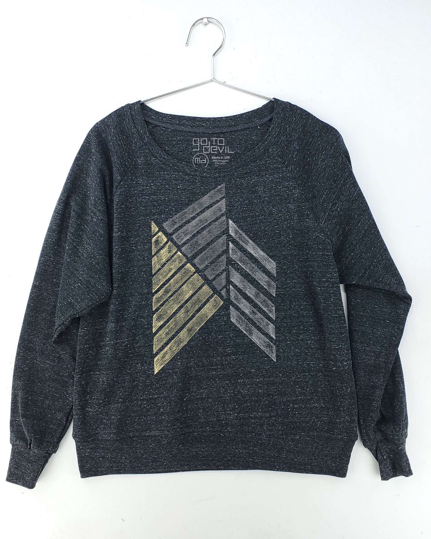 BEST SELLER! Our Tri Blend Pullover is a slouchy top in a soft tri-blend fabric. Perfect for layering and wearable year round. Made in the USA and hand printed to order at Go To Devil HQ.