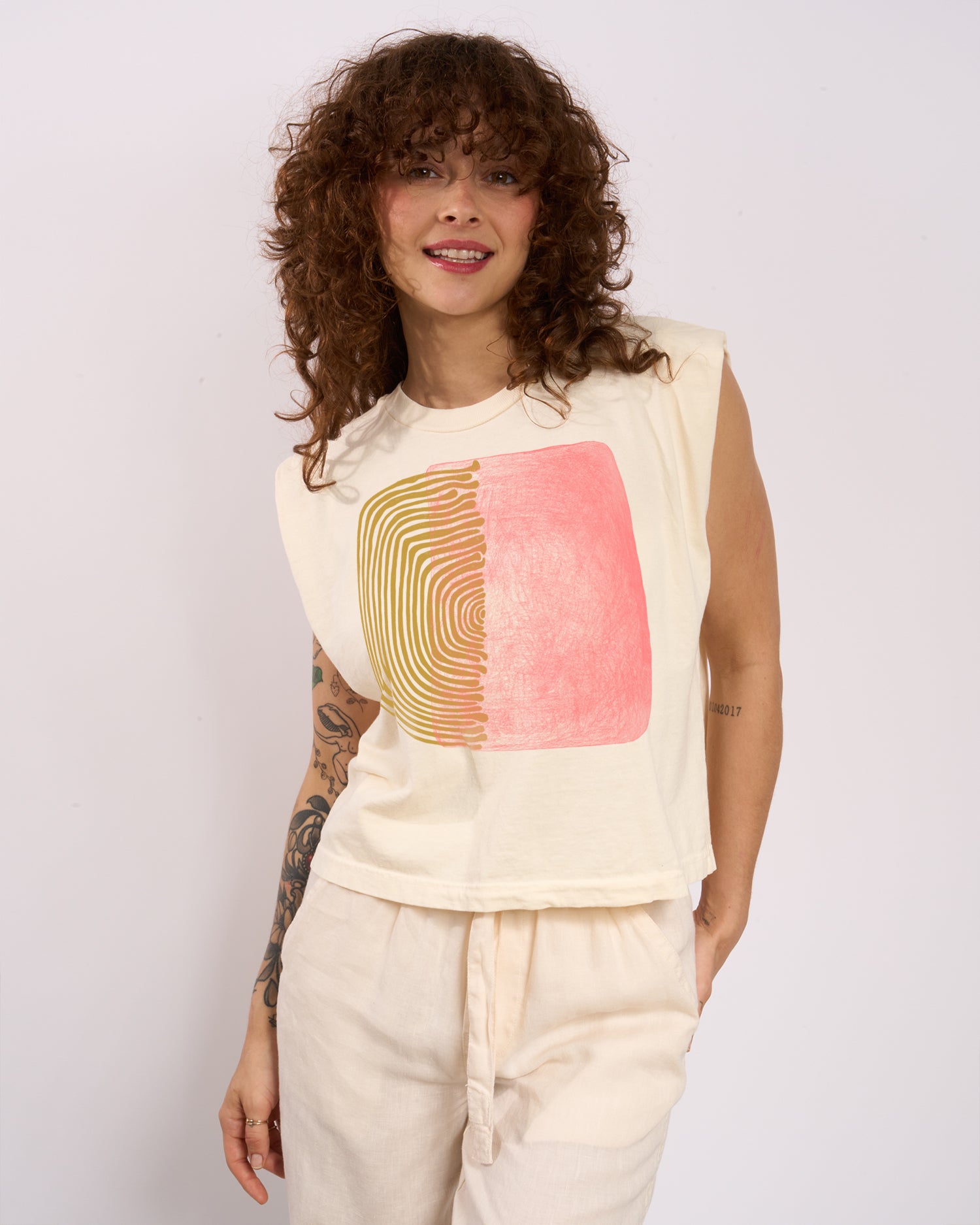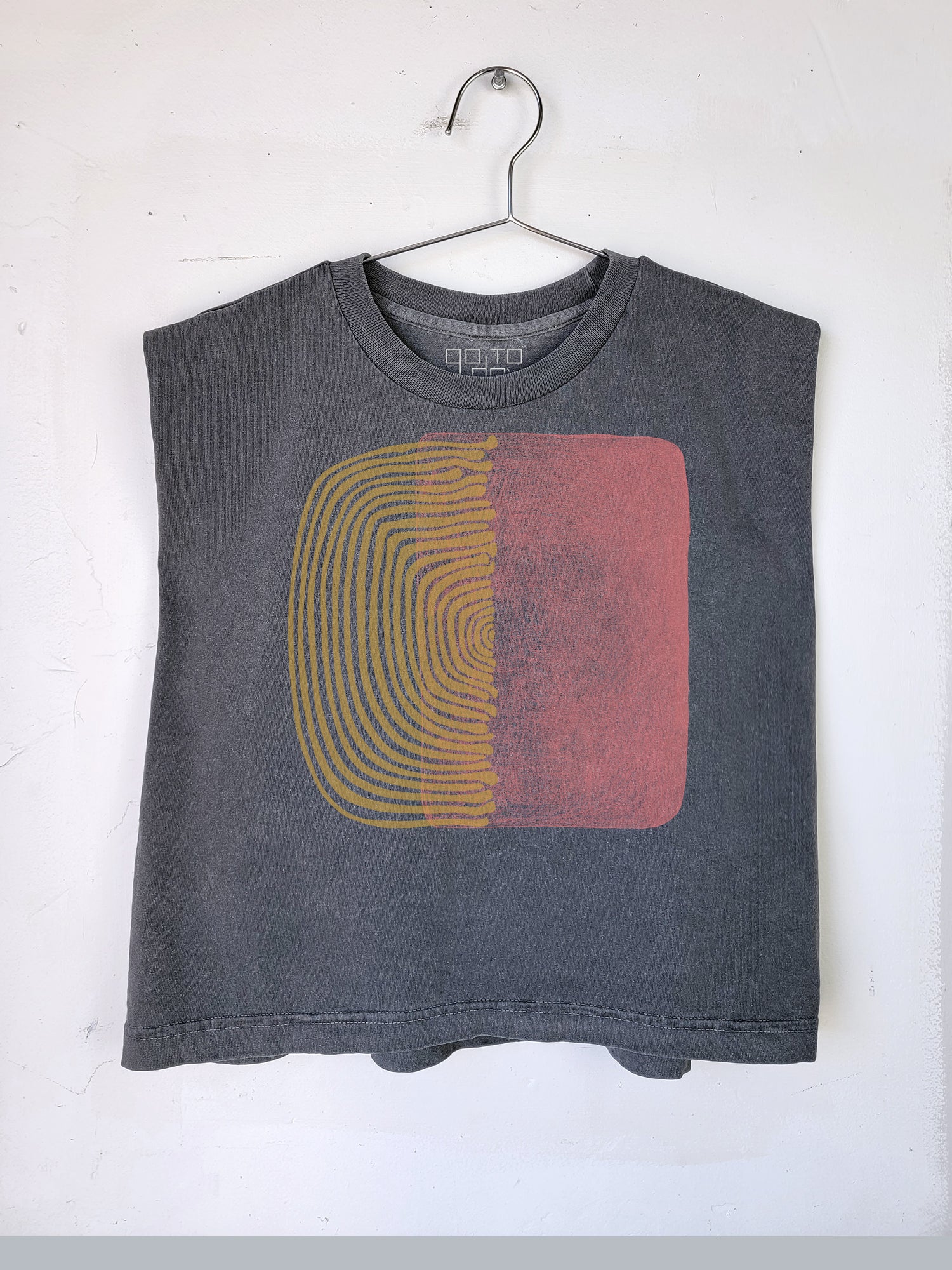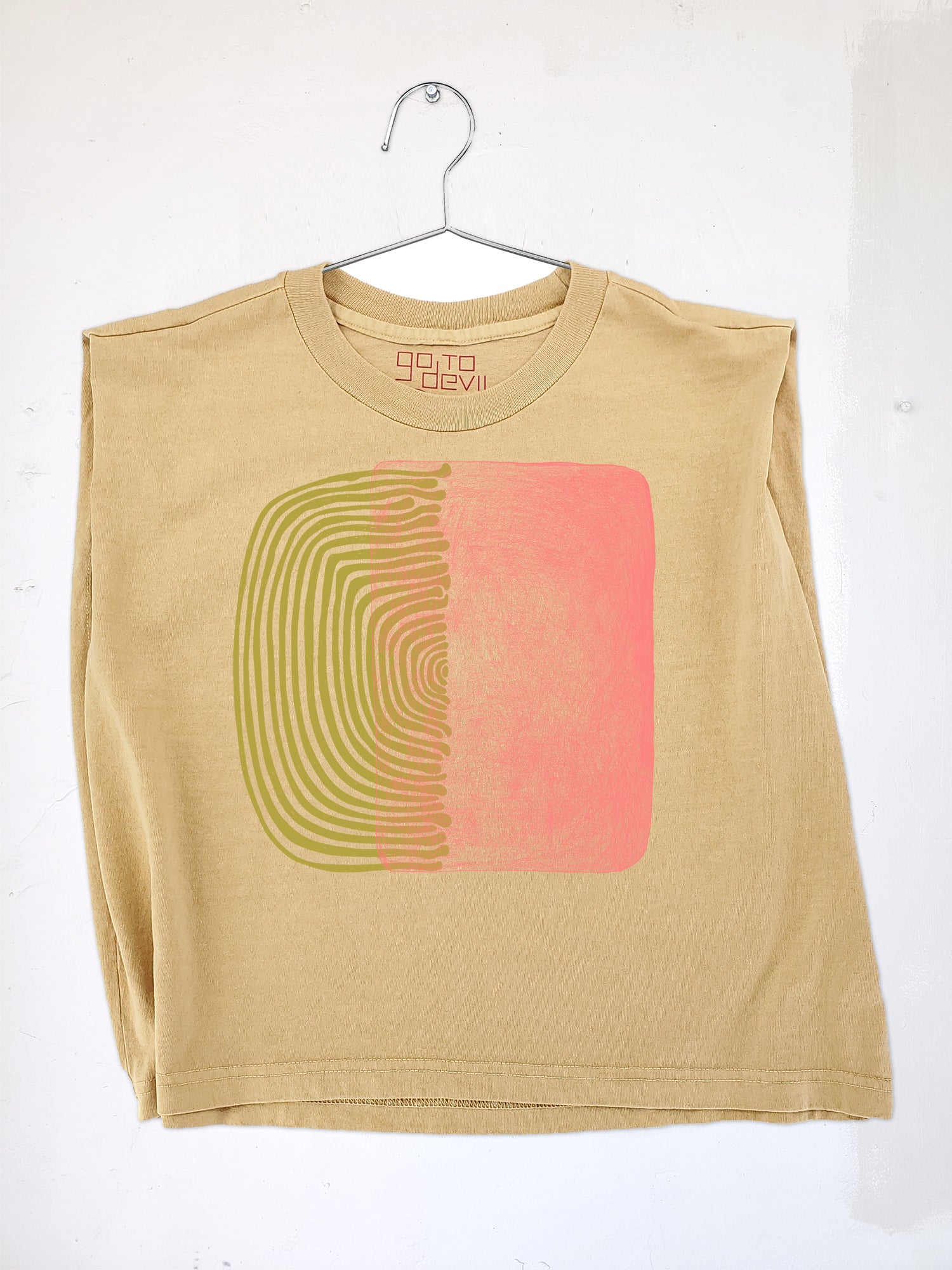 BEST SELLER! Garment dyed heavyweight muscle tee with structured shoulders and a boxy fit. Slightly cropped. Hand printed to order at Go To Devil HQ.