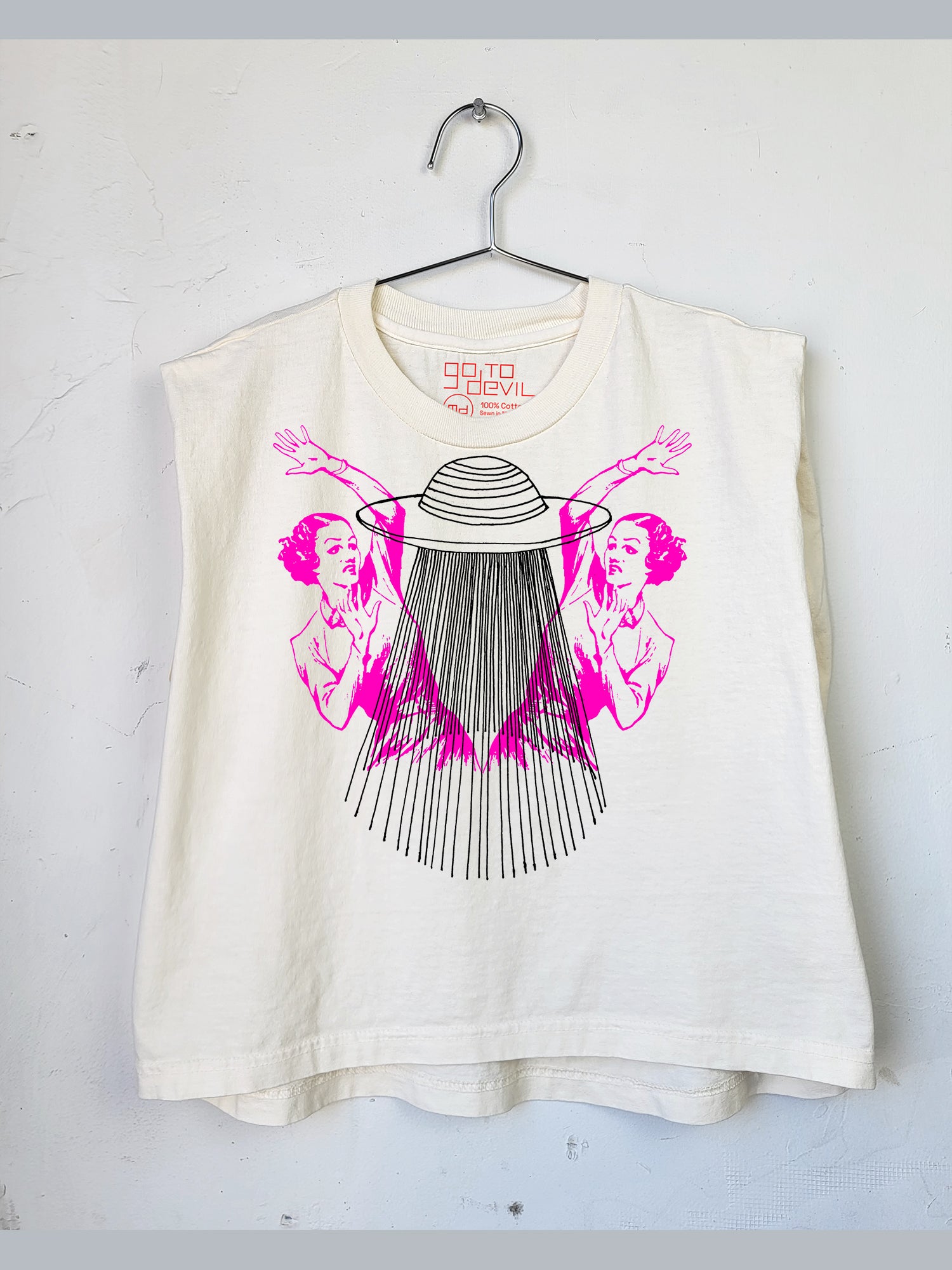 BEST SELLER! Garment dyed heavyweight muscle tee with structured shoulders and a boxy fit. Slightly cropped. Hand printed to order at Go To Devil HQ.